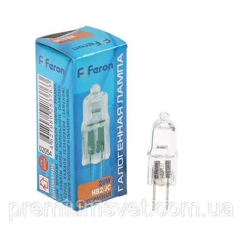 Лампа галогенна JC 12v 20w капсуль G-4 FERON відрізняється від інших типів ламп тим, що в них додають буферний газ, це може бути як пари брому, так і йоду. Така добавка продовжує термін експлуатації лампи до 3 000 — 4 000 годин і водночас дає змогу у величі температуру спіралі, що сприятливо впливає на світловидатність і дає змогу вдвічі скоротити споживану потужність.